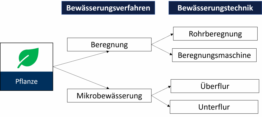 VIOLA macht die Wahl des Bewässerungsverfahrens und somit der Bewässerungstechnik von der gewählten (anzubauenden) Pflanze abhängig.