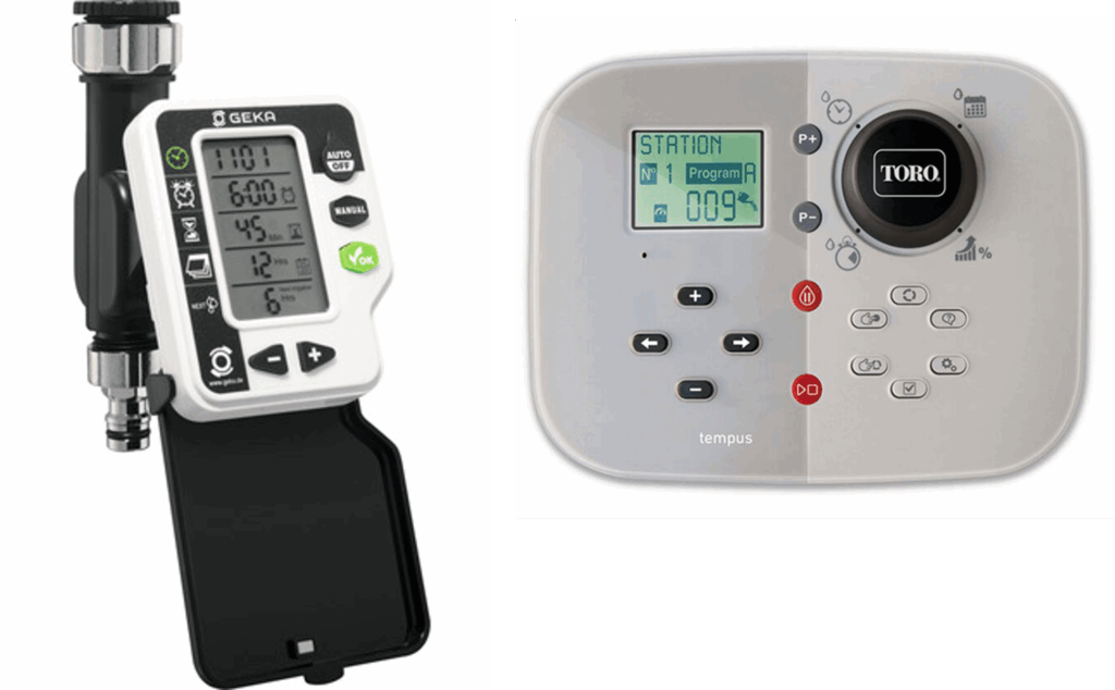Steuergeräte (Bewässerungscomputer) schalten über Magnetventile die Bewässerung.